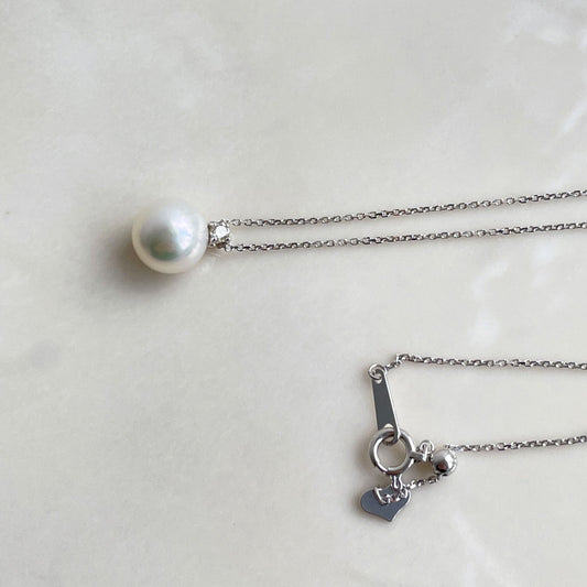 アコヤパールペンダント/ダイヤ/アズキチェーン/K18WG