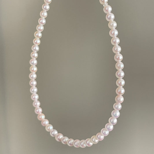 真珠のネックレスと聞いてまず思い浮かぶのは、ハレの日に身に着ける、日本ではおなじみの一連ネックレスです。 結婚式や式典ではもちろん、葬儀など悲しみの席でも身に着けることができるジュエリー。 成人のお祝いに、親から子へ送られるファーストジュエリーとしても馴染みがあります。