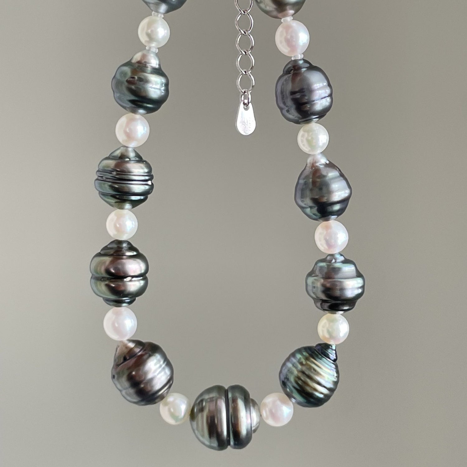 養殖真珠の母貝の中で一番大きなシロチョウガイから生まれる白蝶パールと南洋パールは、ダイナミックで華やかな印象です。 サイズは10~18㎜と大変大きく、平均サイズは10~12㎜辺り。 シロチョウガイには貝殻の内側がシルバーリップとゴールドリップと呼ばれるものがあります。シルバーリップはホワイト系(白蝶パール)、ゴールドリップはイエローやゴールド(南洋パール)の真珠を生み出します。