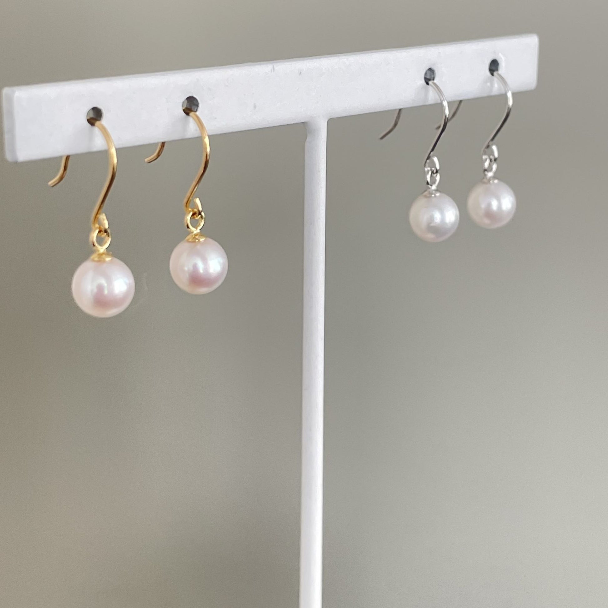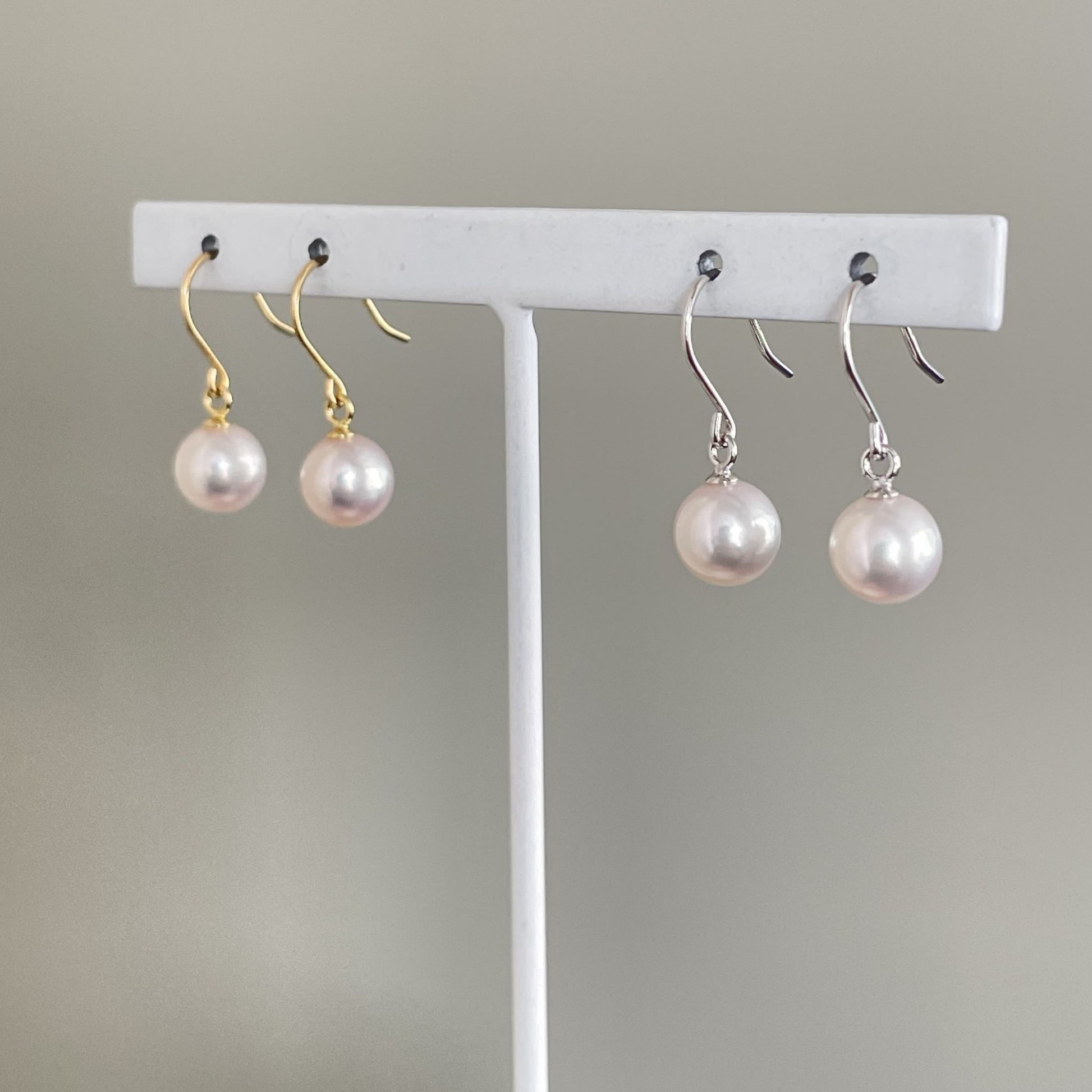 上品な輝きを放つアコヤパールを使用したフックピアス。日本が誇る真珠の美しさを、毎日のコーディネートに取り入れてみませんか。フックタイプの洗練されたデザインは、特別な日のドレスアップから日常使いまで、長く愛用できる一品です。