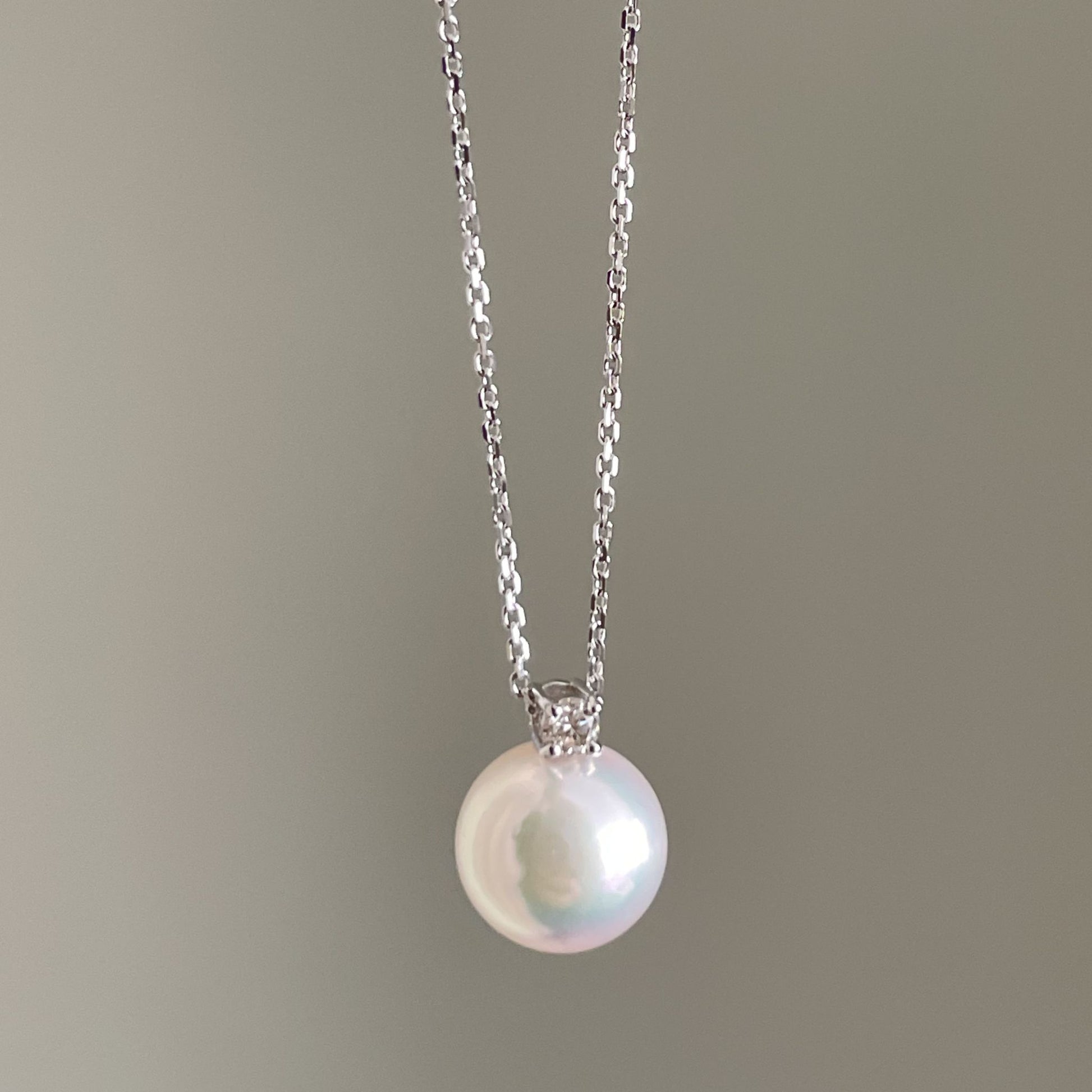アコヤパールペンダント/ダイヤ/アズキチェーン/K18WG