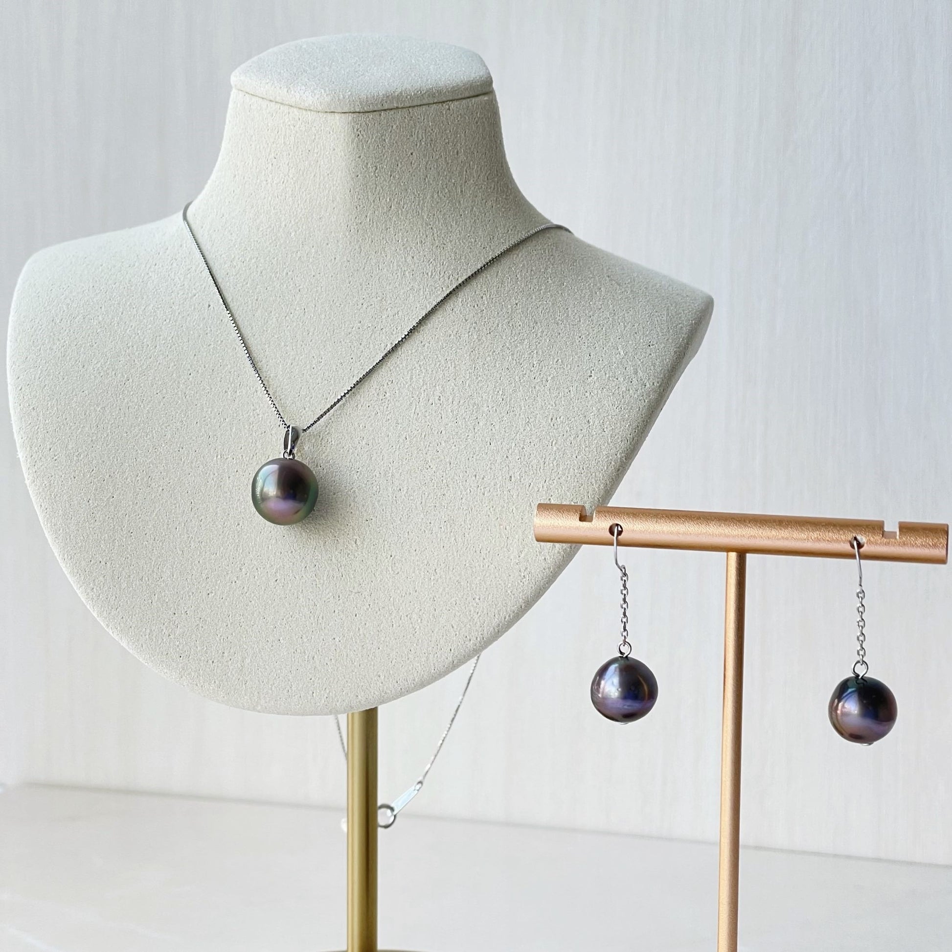 【クリスマスフェア】黒蝶パールペンダント&フックピアス