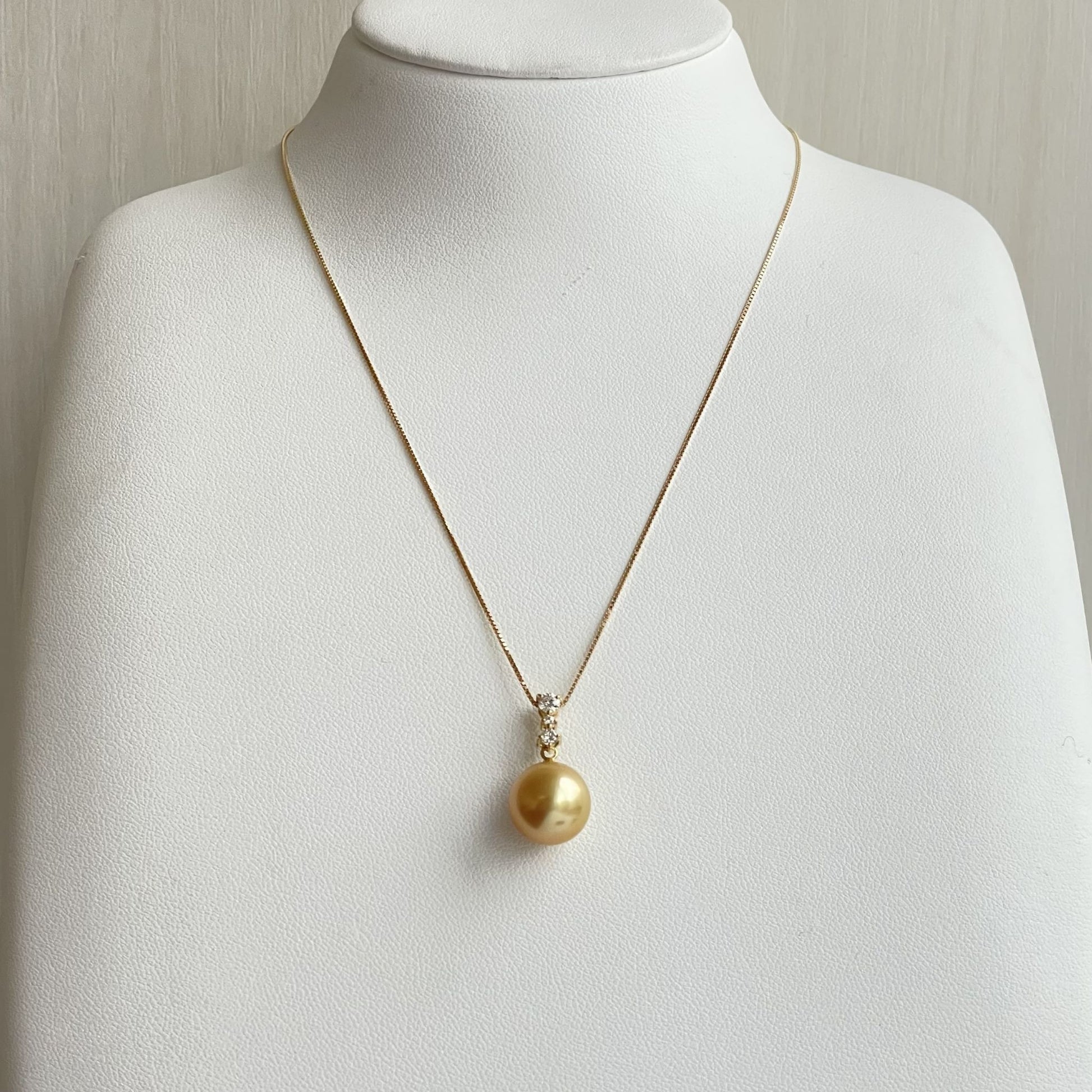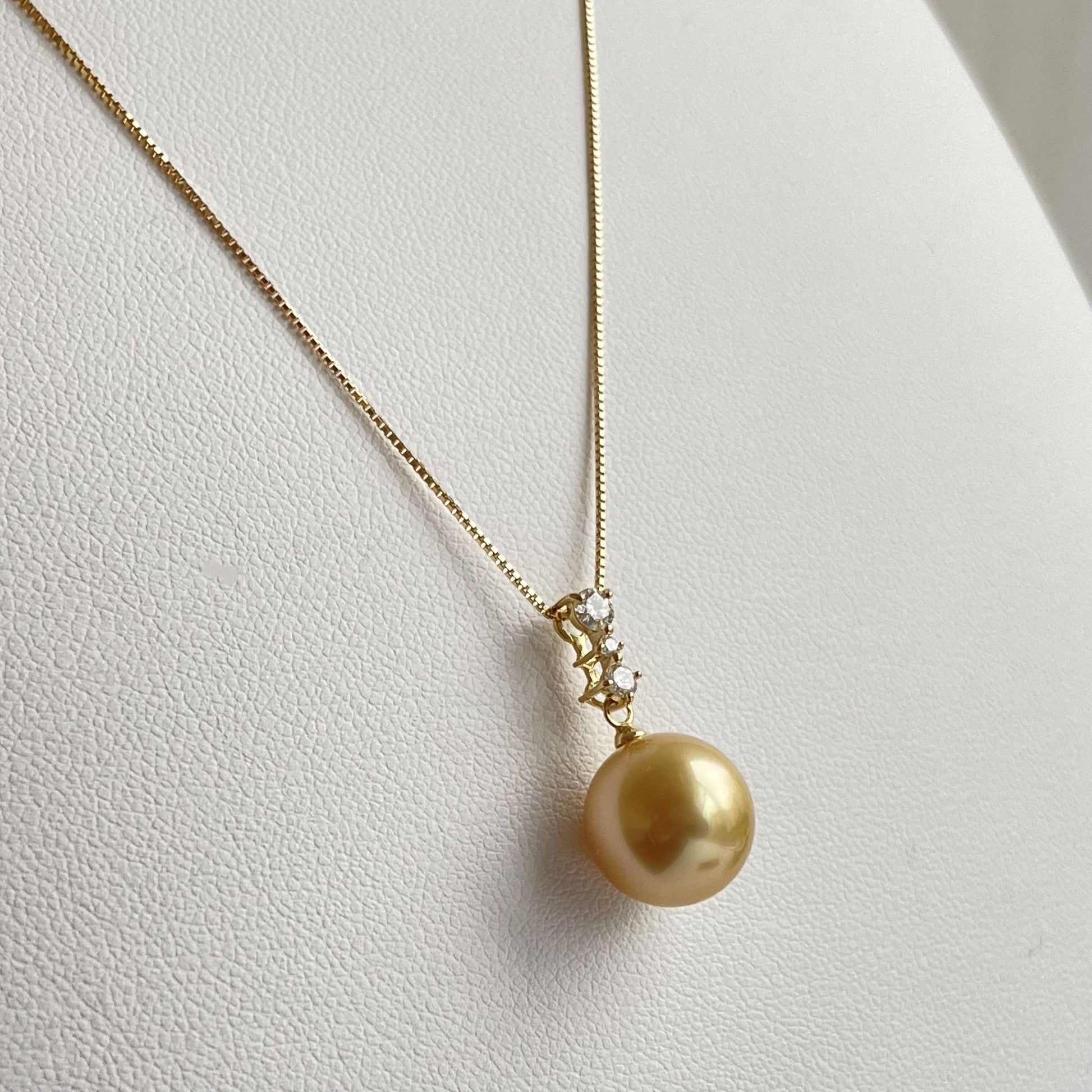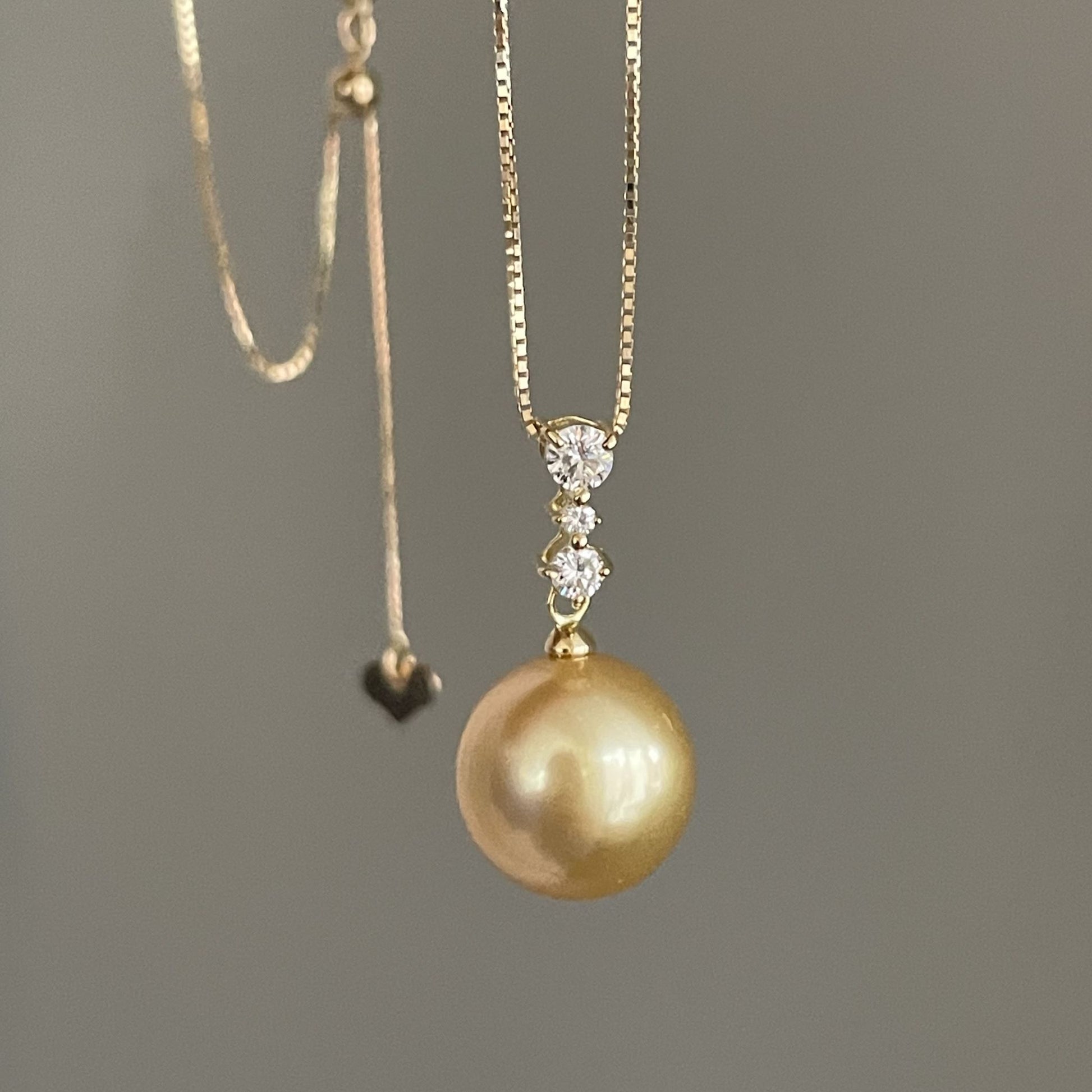 存在感あるゴールドパールとダイヤが輝くペンダント。