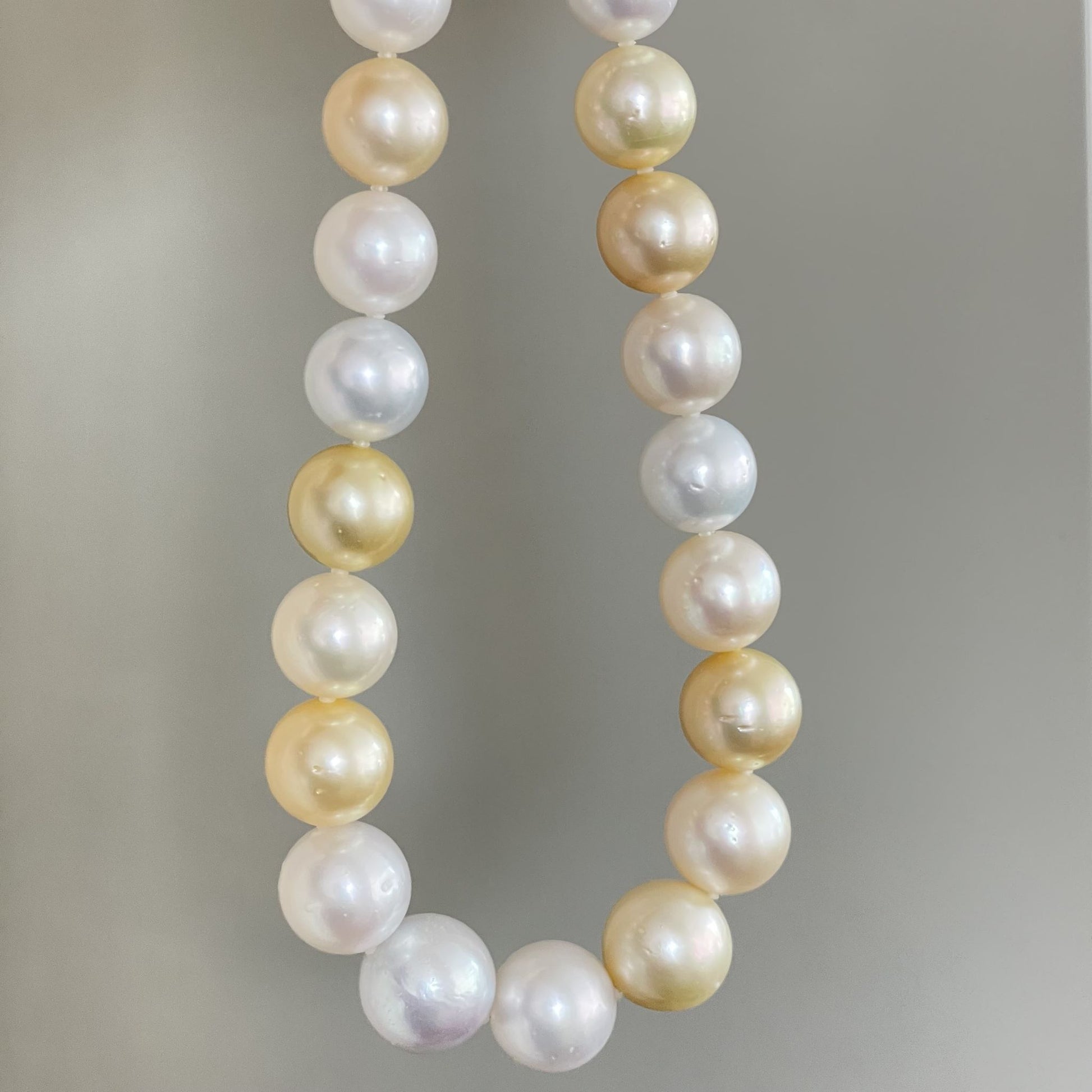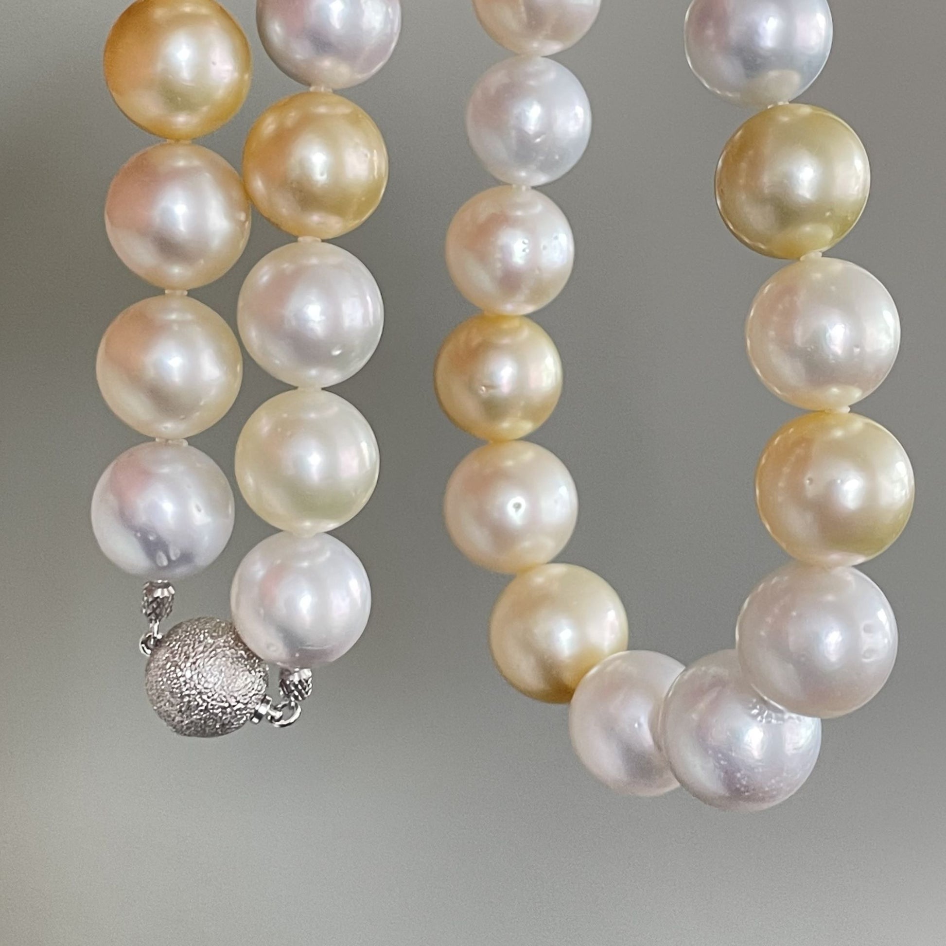白蝶パールのホワイト珠とゴールド珠のマルチカラーが美しい輝きを放ちます。