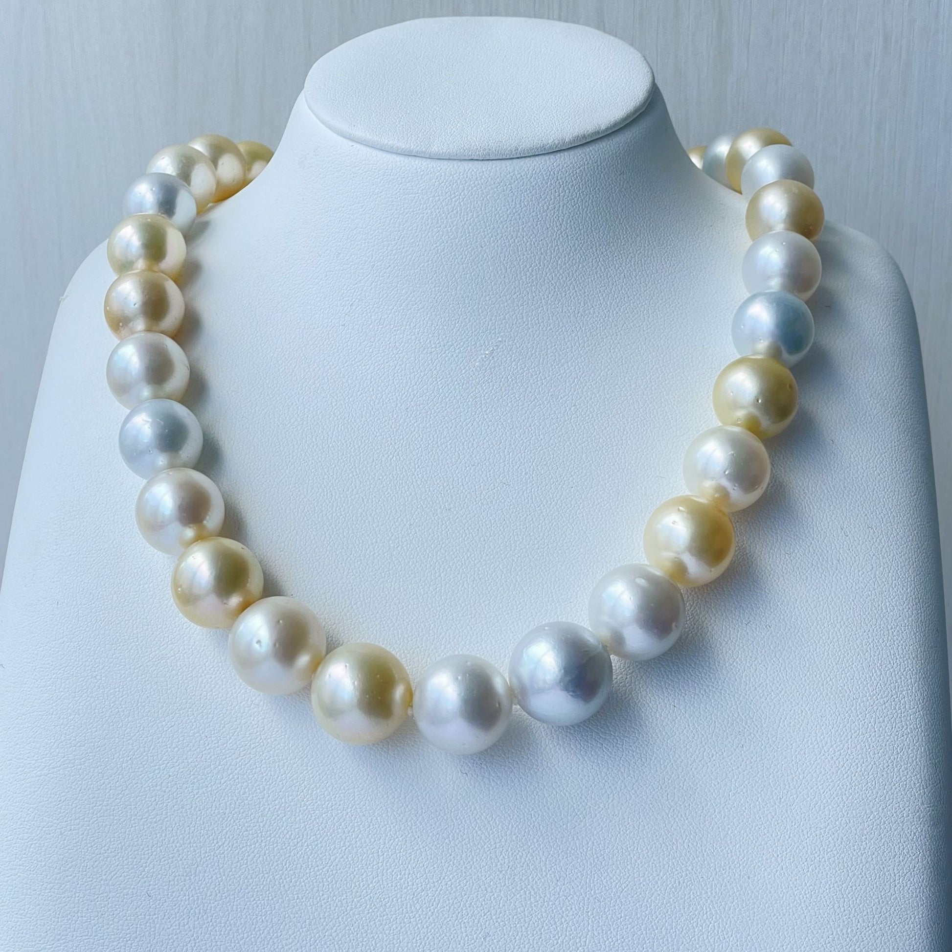 大珠のため、えくぼ(へこみ)は有りますが、テリの良い真円珠でこのサイズは貴重です。