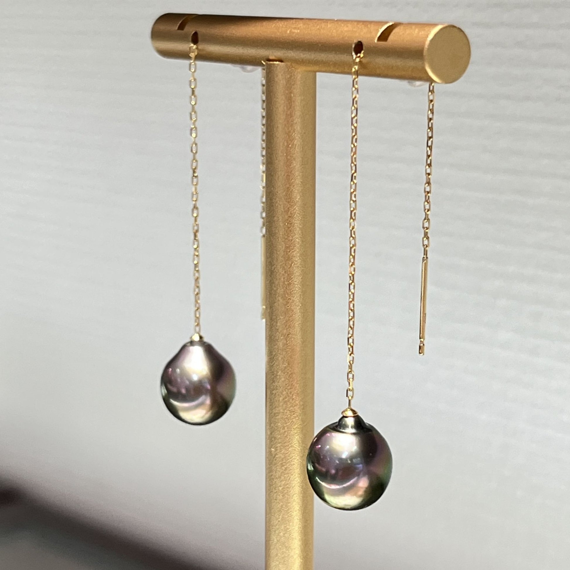 【再入荷】黒蝶パールピアス/アメリカン/K18YG